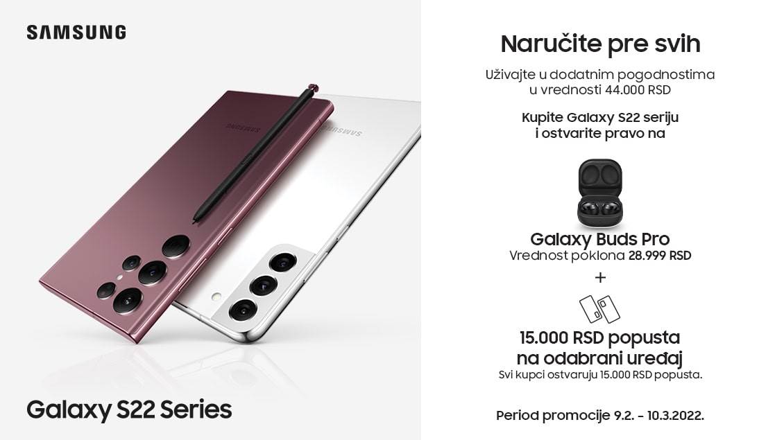 Popust u iznosu od čak 15.000 dinara, kao i poklon - Galaxy Buds Pro slušalice očekuju sve vas koji rezervišete svoj telefon do 10. marta 2022. godine!