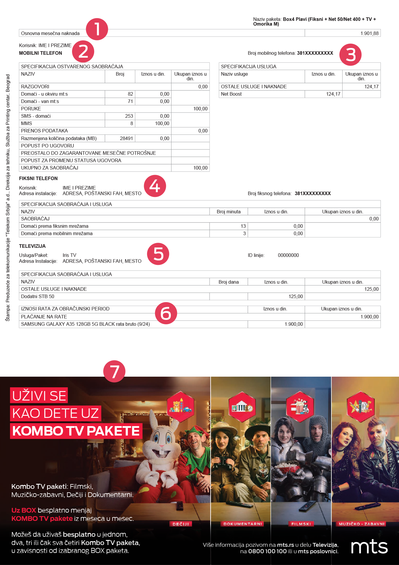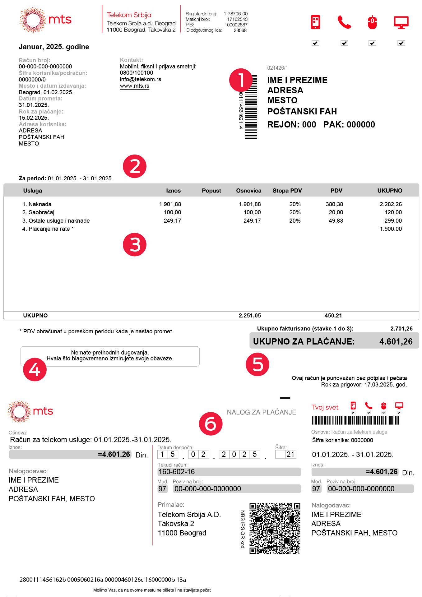 Na oglednom primerku računa podaci su provizorni i služe u svrhu pojašnjenja i boljeg razumevanja pojedinih stavki računa.
