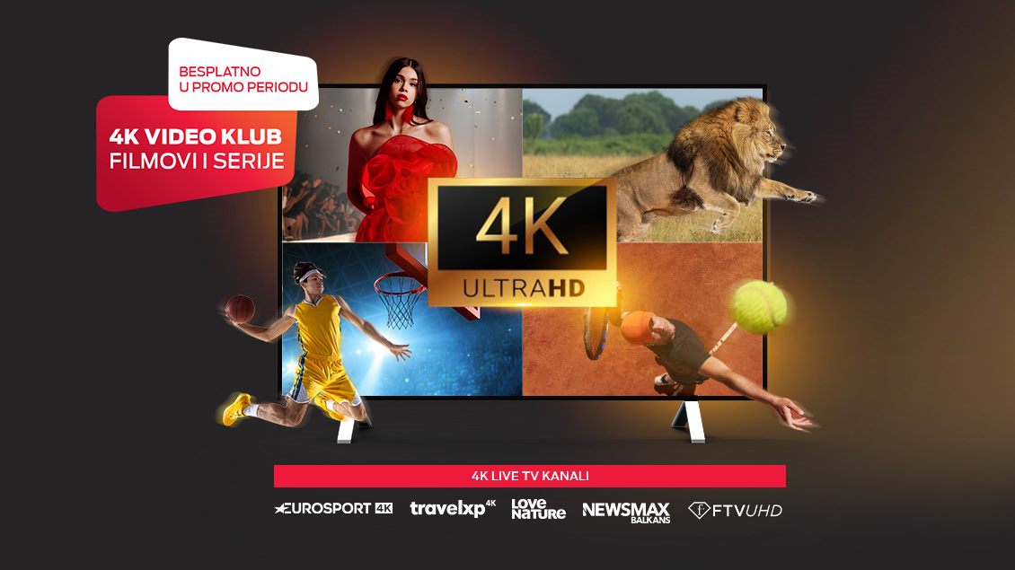 Otkrijte potpuno drugačiji doživljaj gledanja omiljenih TV sadržaja. Uživajte u kristalno jasnoj, živopisnoj slici onda kada to vama odgovara, bez ograničenja uz novi TV paket u našoj ponudi - paket4K !